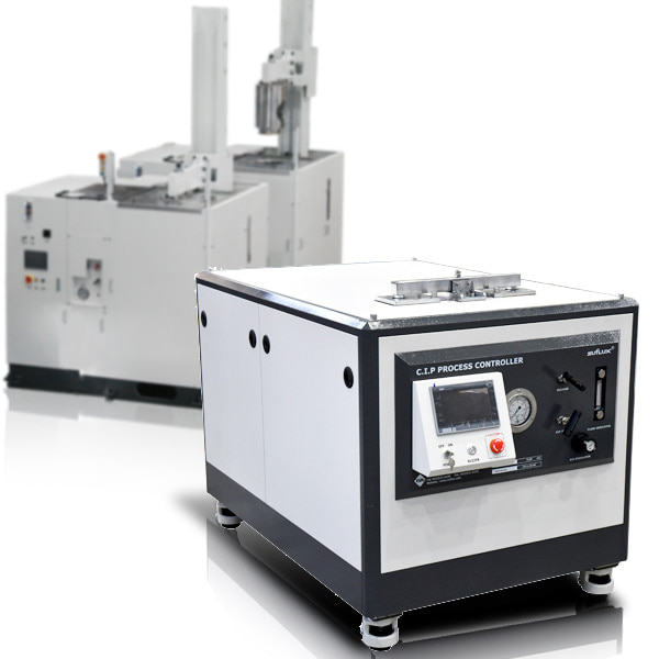 물, 기름 등의 액체나 기체 등이 사용되며, 유체 속에 존재하는 물체에 동일한 방향에 같은 힘이 전달 될 수 있도록 하는 것으로, 처리하고자 하는 물질을 압력용기에 넣고 높은 압력을 가하면 내부에 채워진 유체에 의해 발생되어진 압력으로 인해 시료 외부의 모든 면에 균일하게 힘이 작용되며 압축성형,소결,살균 등의 처리가 가능합니다.