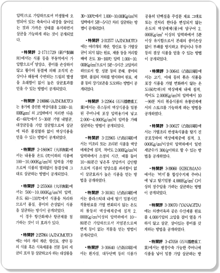 식품의 조리, 가공, 살균에 압력을 이용하는 기술로써 현재까지