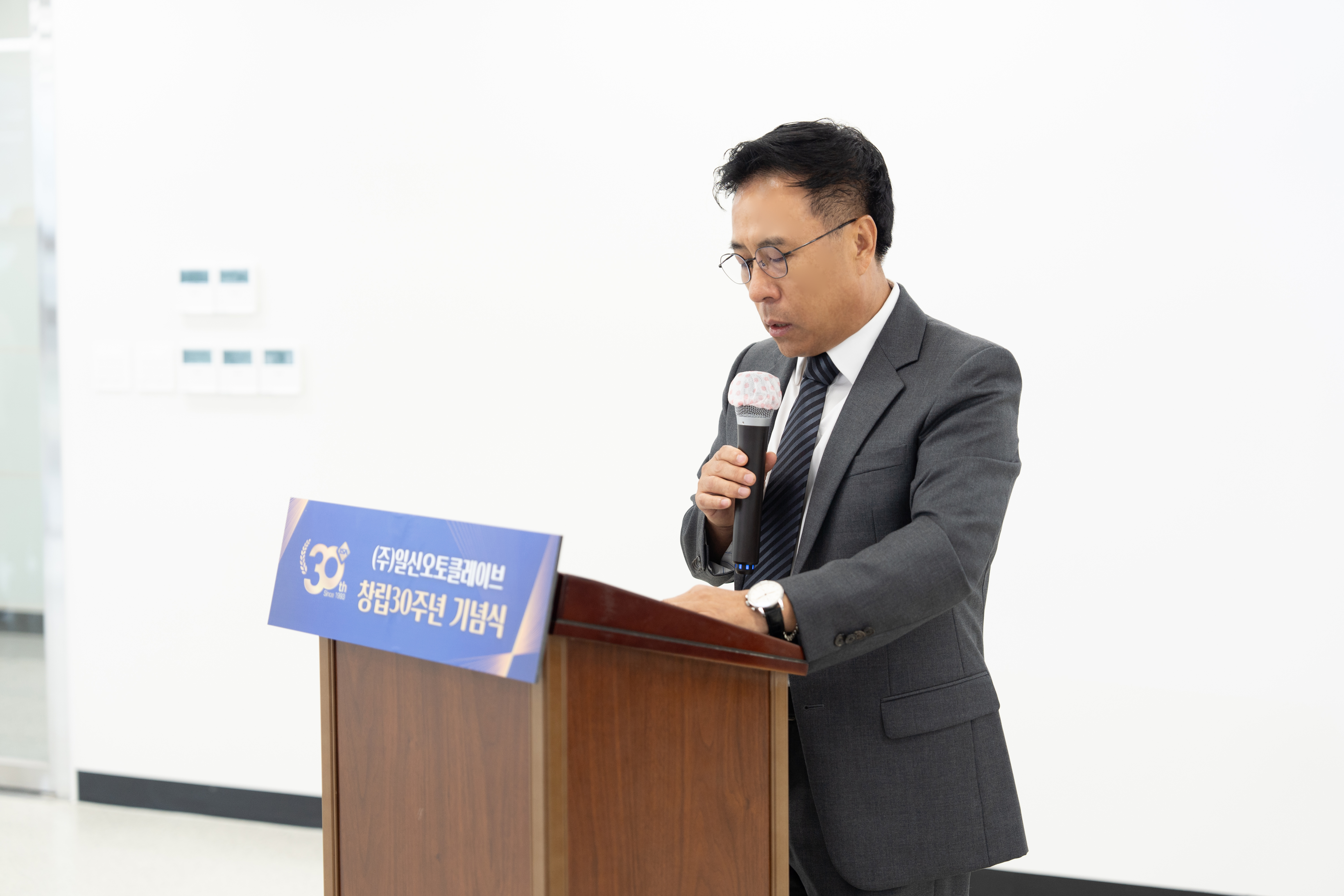 김현효 대표이사님은 30년이라는 시간 동안 회사를 이끌며 함께해 준 임직원에 대한 고마움과 앞으로 회사에 대한 비전, 일신의 구성원으로서 미래를 위해 갖추어야 할 가치에 대해 말씀해 주셨습니다.