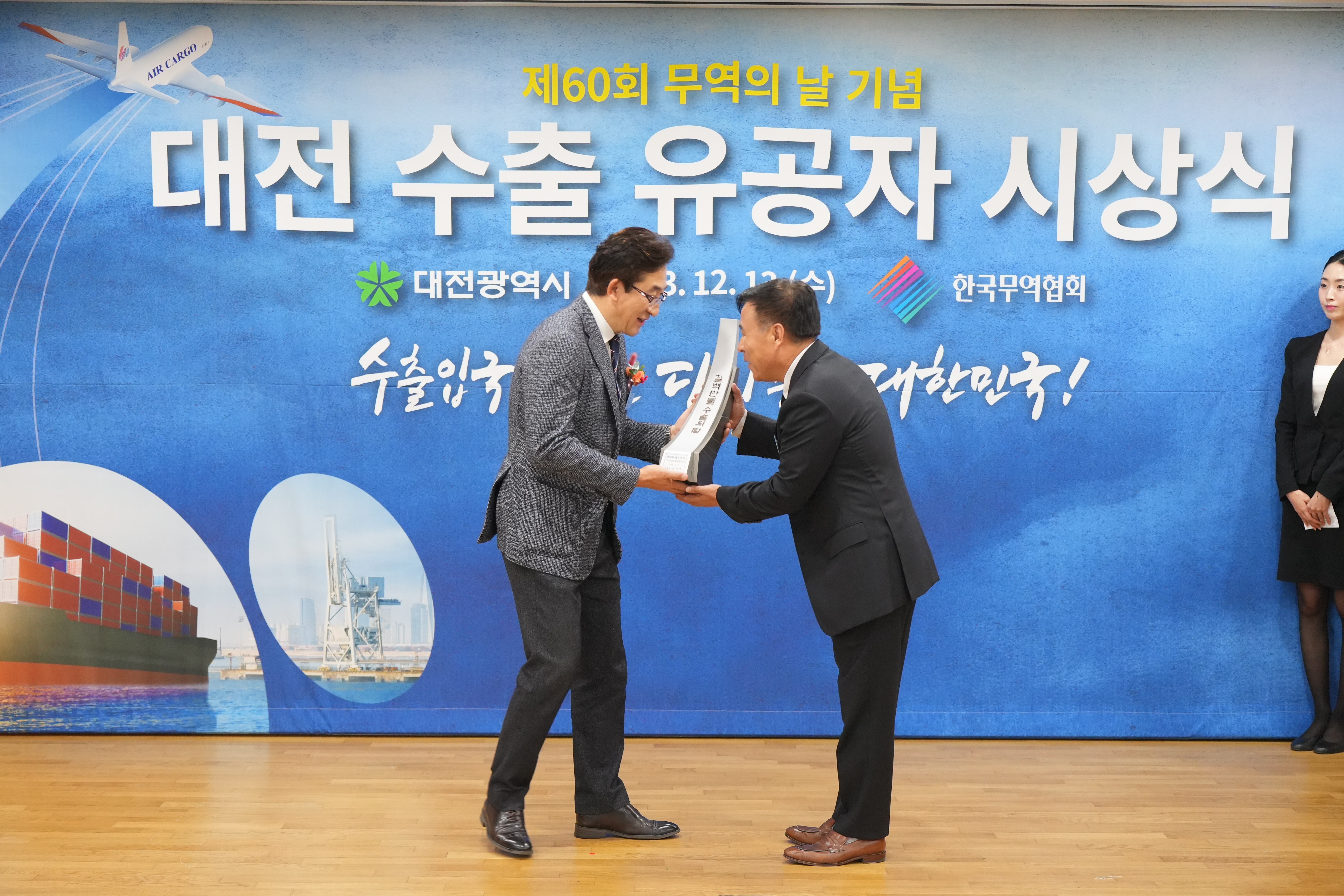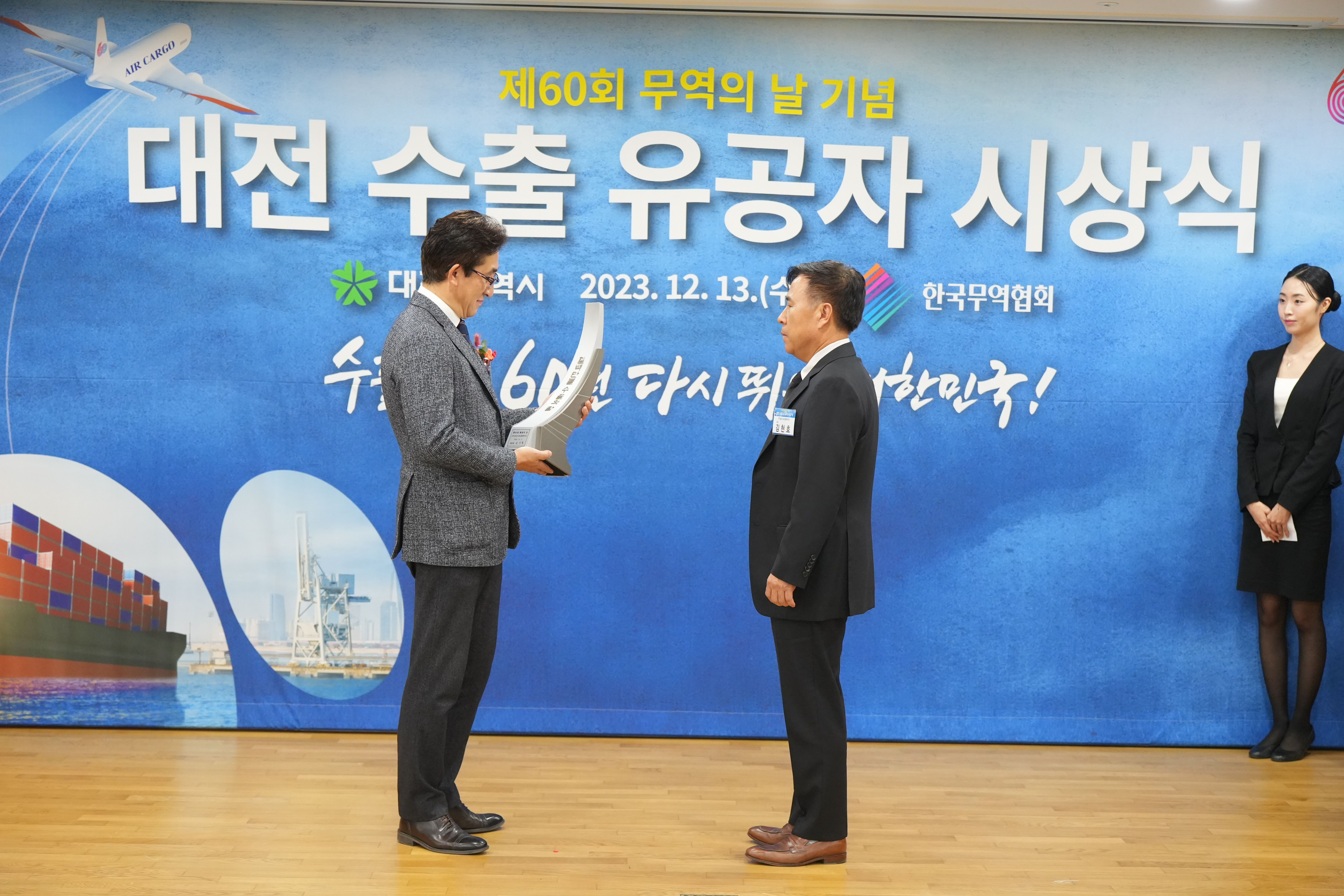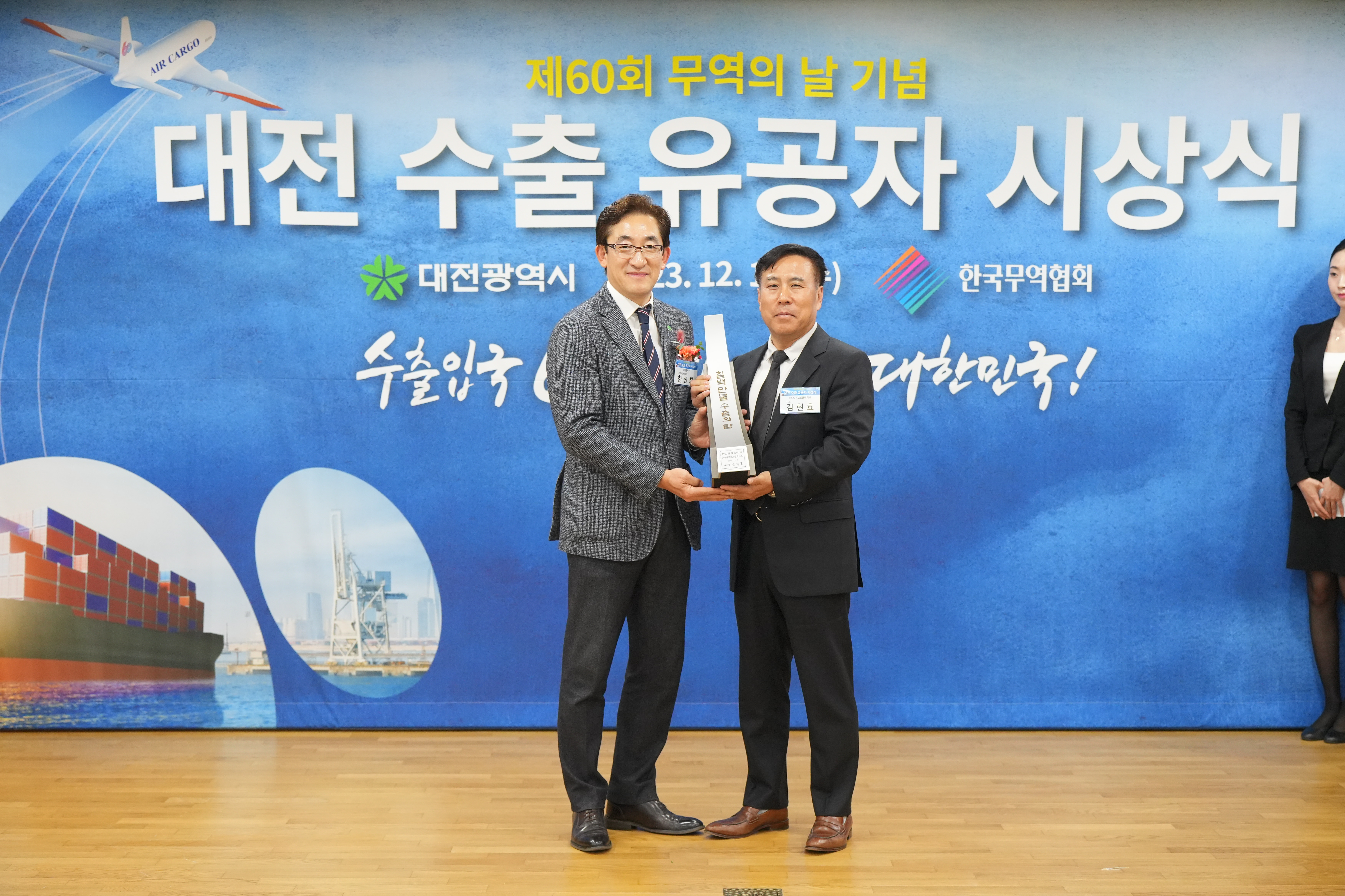 12월 5일 개최된 무역의 날 행사에 이어 대전시에서는 대전 수출의 탑 및 유공자 시상식을 지난 12월 13일 대전무역회관에서 개최했습니다. 이번 시상식은 대전 지역 30개 수출기업이 참여해 성황리에 진행되었는데요, 일신오토클레이브의 김현효 대표님도 참석하여 직접 수출의 탑을 수상하셨습니다.