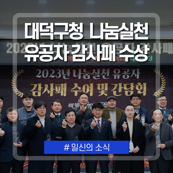 1월의 끝자락, 대덕구청에서 2023년 나눔실천 유공자 감사패 수여식 및 간담회가 열렸는데요. 그 뜻깊은 행사에 저희 일신오토클레이브도 감사패 수여 기업으로써 참여했습니다. 지금부터 그 현장을 같이 보실까요?