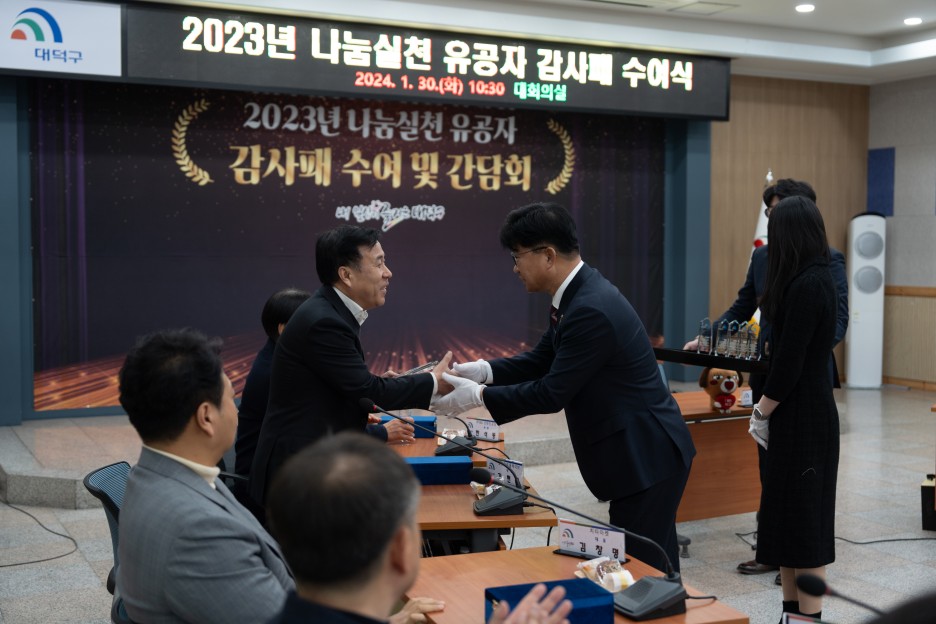 [충청뉴스 박영환 기자] 대전 대덕구(구청장 최충규)는 30일 구청 대회의실에서 지역의 어려운 이웃들을 위해 지속적인 나눔을 실천해 온 후원자를 초청해 감사패를 수여했다고 밝혔다.대덕구에