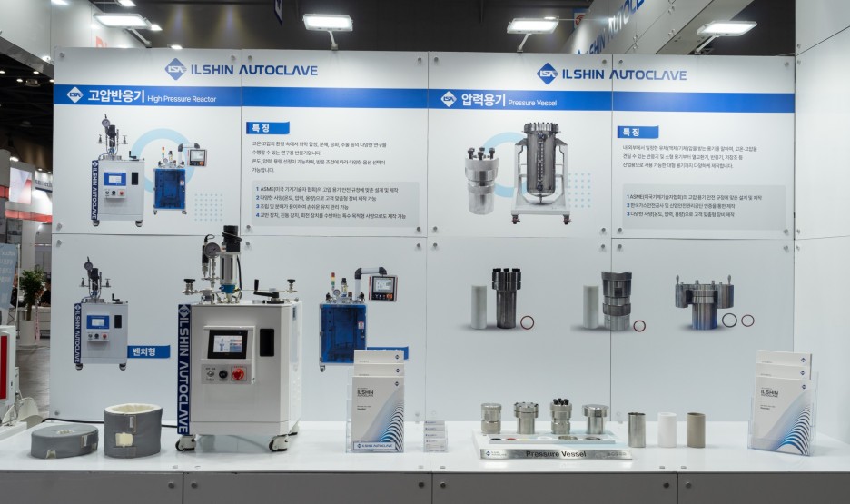부스로 오시면 자회사인 하이플럭스와 펌스터도 만나볼 수 있는데요, 고온·고압 기술의 전문가 일신오토클레이브와 초고압 밸브 전문업체 하이플럭스, 그리고 고압펌프의 선두기업 펌스터가 한자리에 모두 모였으니 장비에 대한 통합 솔루션이 가능하겠죠? 고온·고압 장비나 공정을 고려하고 계셨던 관계자 분들이라면 컨설팅을 받기에 이만큼 좋은 기회가 없을 거예요!