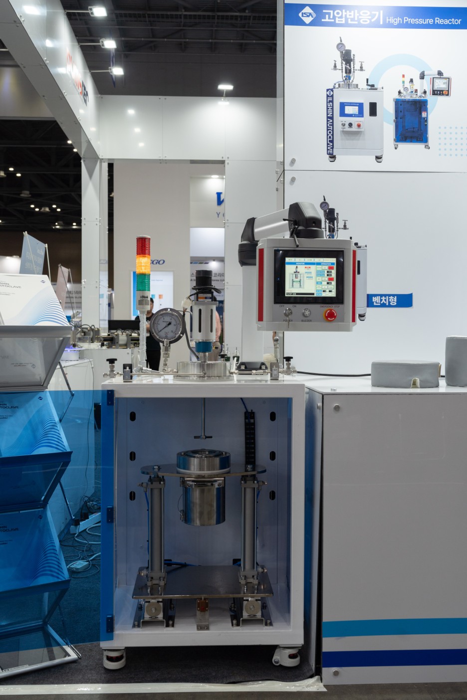다음은 고압반응기 라인인데요, 이번 COPHEX 현장에는 벤치형과 스탠드형 반응기가 전시되어 있습니다. 각 반응기의 특징은 무엇인지, 내부는 어떻게 생겼는지, 조작은 어떻게 하는지 등을 직접 보고 듣고 경험해 보기에 딱이라고 할 수 있어요.