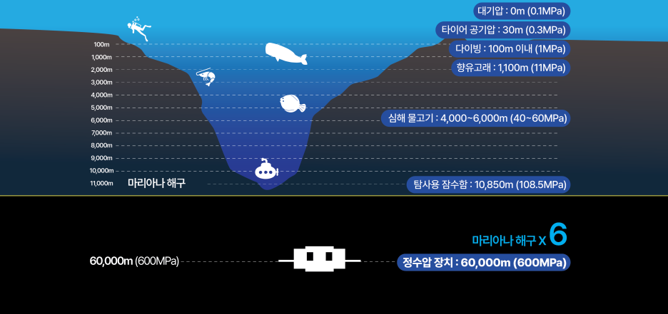 일신오토클레이브 WIP의 적용 압력은 600MPa인데요, 이는 지구상 가장 깊은 해구인 마리아나 해구 압력의 6배에 달하는 초고압이라고 할 수 있습니다. 그래서 WIP를 이용한 공정을 거치면 배터리의 외형 변화 없이 전극 입자 사이 공극을 줄이고, 고밀도의 배터리 제조가 가능하게 되는 것이죠!