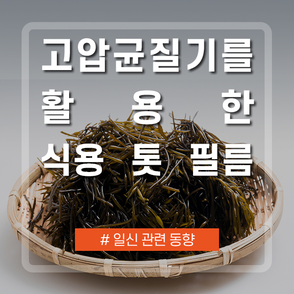 오늘은 우리의 식탁 위에 올라오는 해조류 중에서도 조금은 생소할 수 있는 '톳'에 대한 연구를 소개해드릴까 하는데요, 톳은 칼슘이나 요오드와 같은 무기염류가 풍부하고 여러 효능이 있어 밥에 넣어 먹거나 무침 요리 등에 주로 활용되고있는 식재료에요. 이런 톳에 고압균질화 기술을 접목시켜 가식성 필름으로 개발해보았다는 연구입니다! 같이 보실까요?