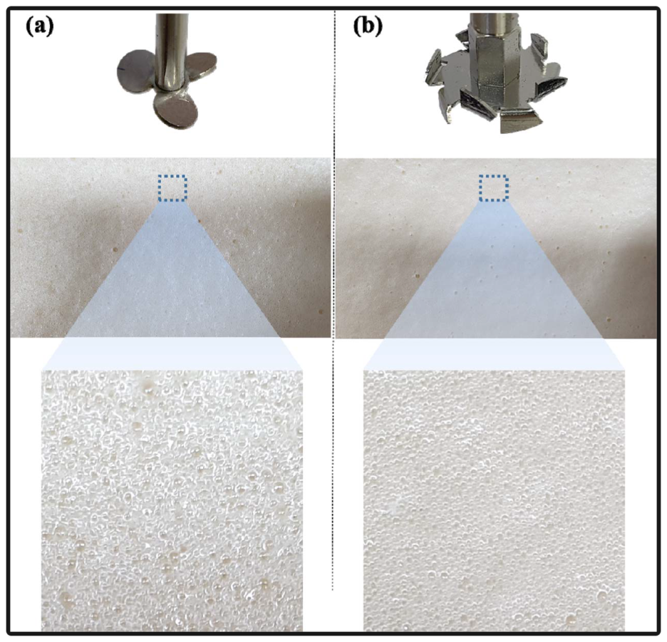 이런 경질 폴리우레탄 폼을 제조하는 공정 중에는 교반기로 각 원료들을 섞어주는 작업이 필요합니다. 그 교반기에 달려있는 임펠러의 형태가 무엇인가에 따라 도출되는 폼의 미세구조가 달라지고, 결과적으로 열전도도에도 영향을 미치게 된다고 하니 적절한 임펠러의 선택도 중요하겠죠?🤓
