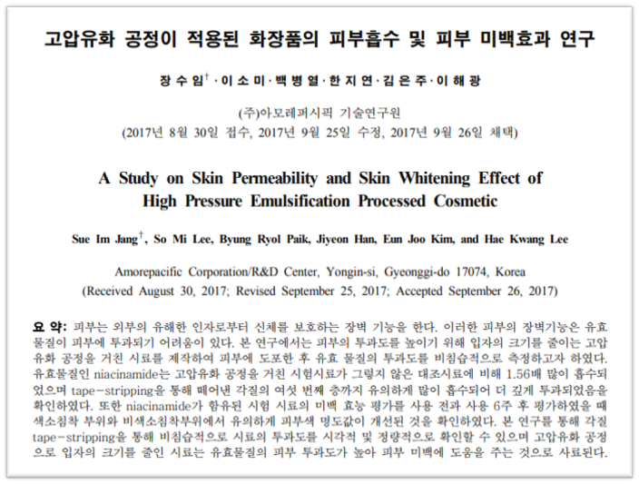 [논문]고압유화 공정이 적용된 화장품의 피부흡수 및 피부 미백효과 연구
