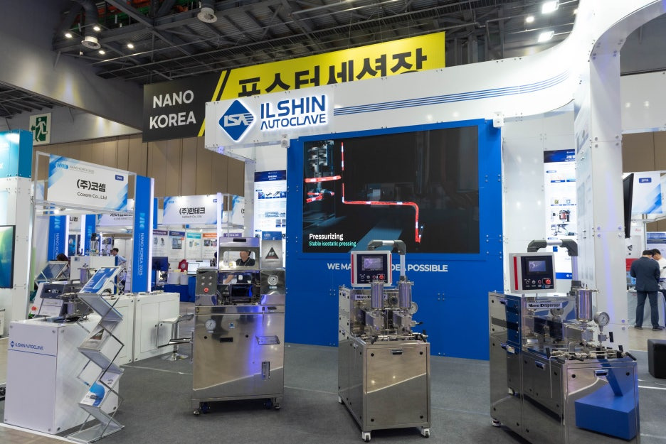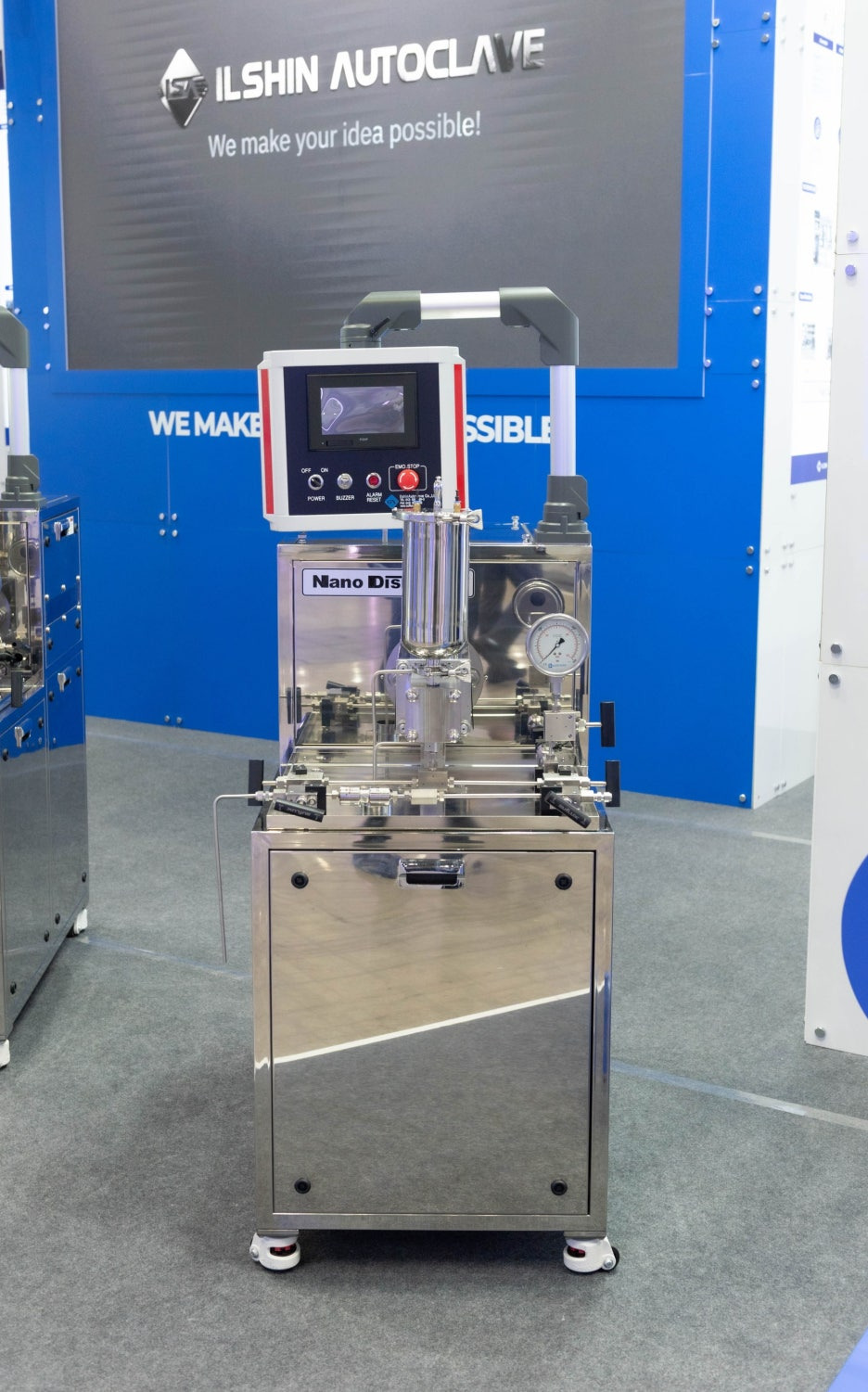 '나노'코리아라는 전시회명에 걸맞게 올해의 일신오토클레이브 부스에는 고압분산기가 메인으로 나섰습니다.