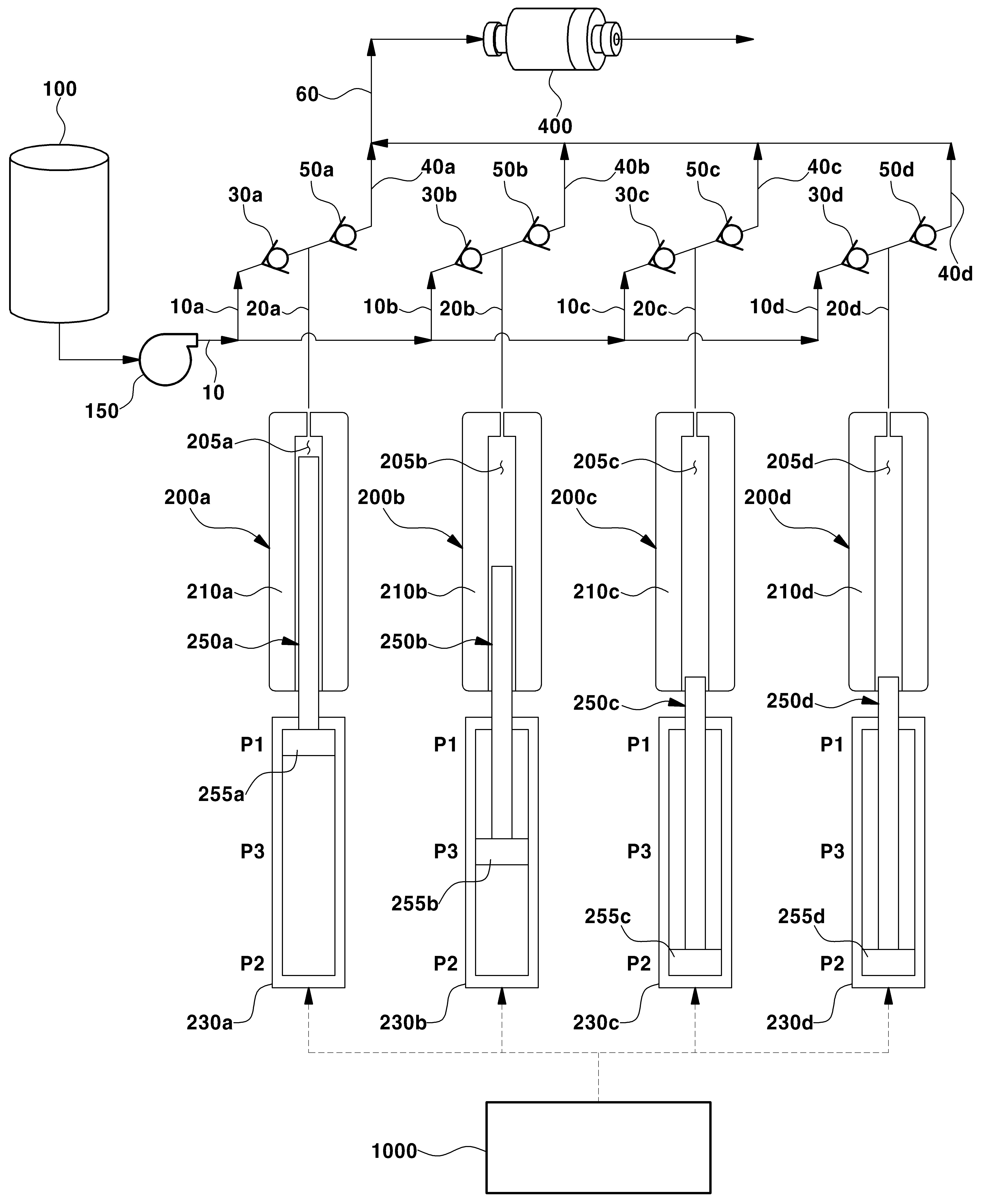 금번 등록된 특허 「분산기용 펌프 모듈」은 실시예에 따른 분산기용 펌프 모듈을 제공한다.공급 탱크로부터 제공된 원료에 압력을 가하기 위한 분산기용 펌프 모듈은 내부에 원료가 유입되는 공간을 정의하는 가압실을 가지는 복수개의 몸체들, 상기 가압실 에 유입된 원료를 가압하는 복수개의 플런저들 및 상기 플런저를 제어하는 제어부를 포함하고, 상기 제어부는 상 기 복수개의 플런저들 각각을 독립적으로 제어하되 상기 플런저들 각각의 위상이 서로 상이하도록 제어하여 원료 에 인가되는 압력의 맥동성을 제거에 관한 것이다.
