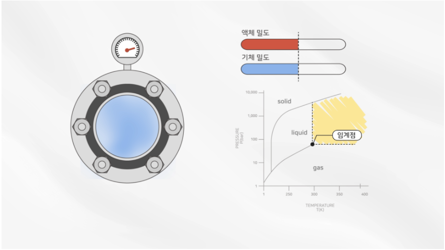 초임계 상태는 고압용기와 액체 이산화탄소로 확인할 수 있는데,